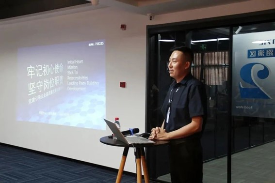为了更好地树立天津市中创蓝德建设运营风控中心(以下简称风控中心)、天津市森宇建筑技术法律咨询集团(以下简称森宇集团)重德崇礼的企业形象,全面提升员工职业素养、服务技能和形象展示能力,2023年9月27日,“牢记初心使命,坚守岗位职责”党建引领企业高质量发展主题培训活动,在风控中心开放式路演厅举行,培训由风控中心员工进行现场授课。风控中心主任、森宇集团总裁、党总支书记徐钢出席活动,风控中心、森宇集团高管团队、中层管理人员、核心骨干及广大干部员工共计50余人参加活动,活动由森宇集团总经理谭頔主持。